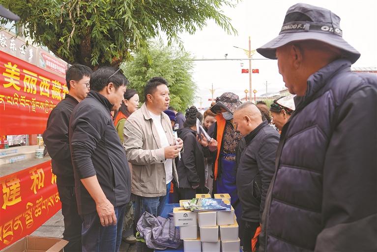 2025年民族团结进步宣传月期间,琼结县通过悬挂横幅、发放资料、现场讲解等形式,向过往群众展示民族团结工作成果。记者 丹增平措 摄