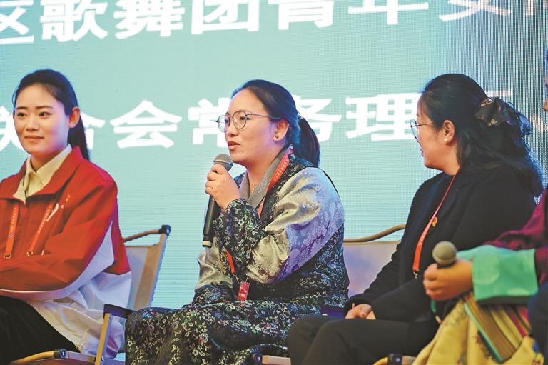 “时代青年的高原奋斗与担当”圆桌讨论嘉宾进行发言。记者 洛桑平措 摄