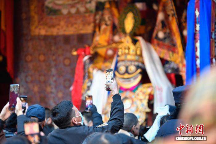 图为信众在大昭寺朝拜白拉姆像。中新社记者 贡嘎来松 摄