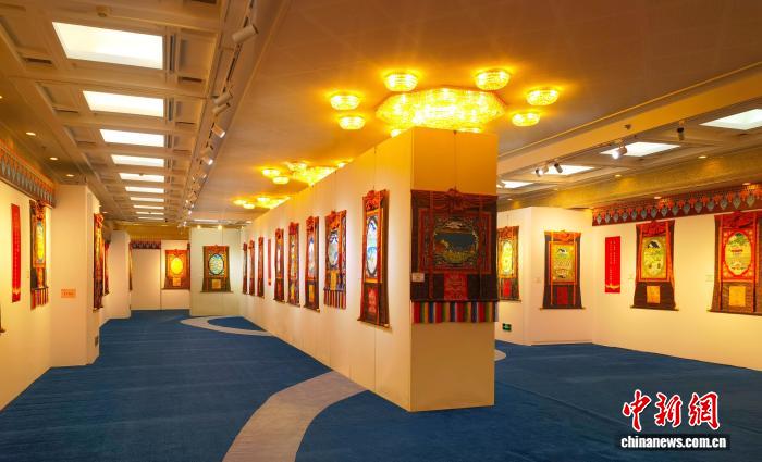 图为展览厅内的60幅主题唐卡新作。于宾 供图
