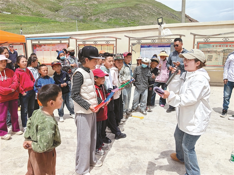 图为驻村工作队为牧民群众宣讲《西藏自治区农牧民享受财政补助优惠政策明白卡(2025年版)》,并发放慰问品。记者 王雨霏 摄