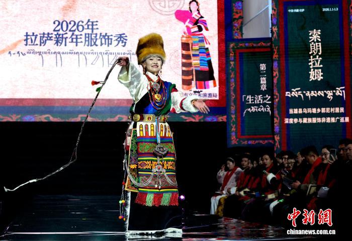 1月1日,由西藏拉萨市文化和旅游局主办的“新岁风华,衣彩拉萨”2026年拉萨新年服饰秀在西藏美术馆正式拉开帷幕。开幕大秀展出来自拉萨各县(区)的代表性服饰,通过服饰生动讲述拉萨故事。图为2026年拉萨新年服饰秀现场。中新社记者 李林 摄