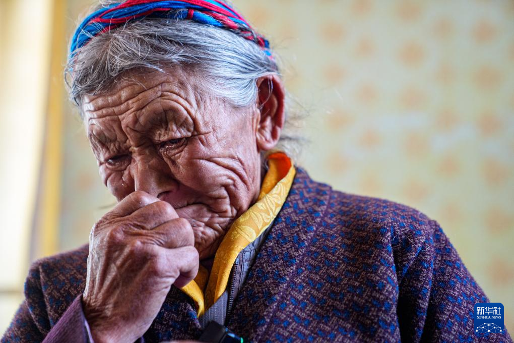 次仁桑姆和家人在宗卡村家中回忆曾经的生活,黯然泪下(3月26日摄)。新华社记者 丁增尼达 摄