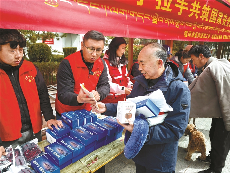 图为工作人员向辖区群众普及国家安全知识。记者 格桑伦珠 摄