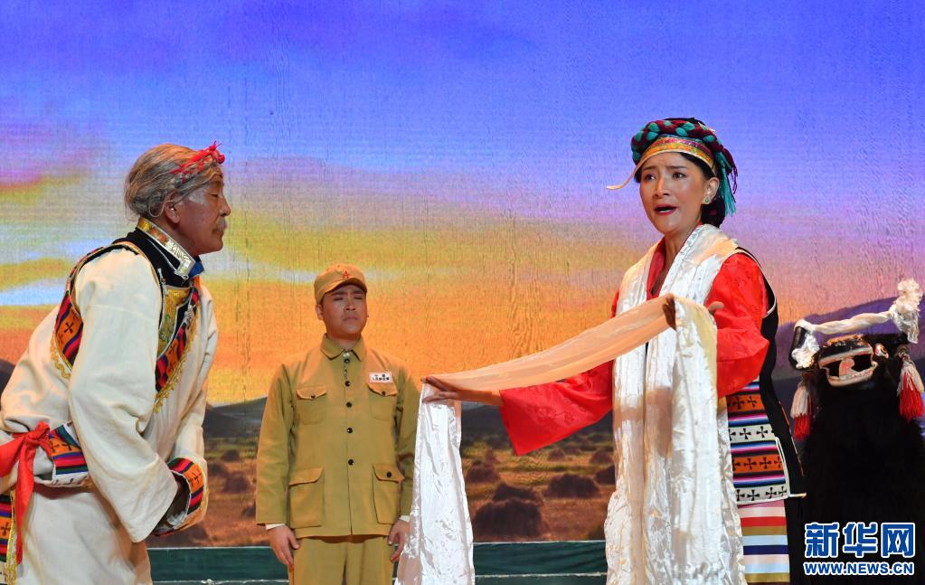 5月19日,演员在新编藏戏《次仁拉姆》中表演。新华社记者 觉果 摄