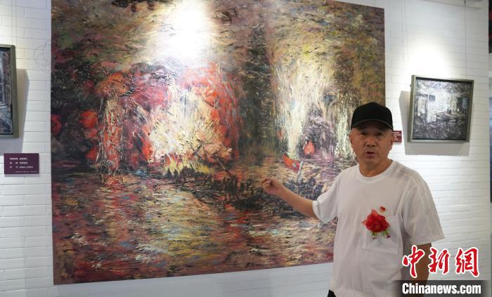 画家崔晓晓介绍作品《血战湘江》。 潘旭临 摄