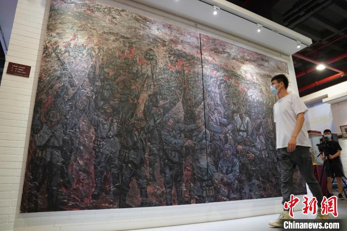 为庆祝中国共产党成立100周年,弘扬伟大的长征精神,由北京文化创意产业展示中心与辽宁教育学院联合主办的大型组画《伟大的长征》16日在北京首展。