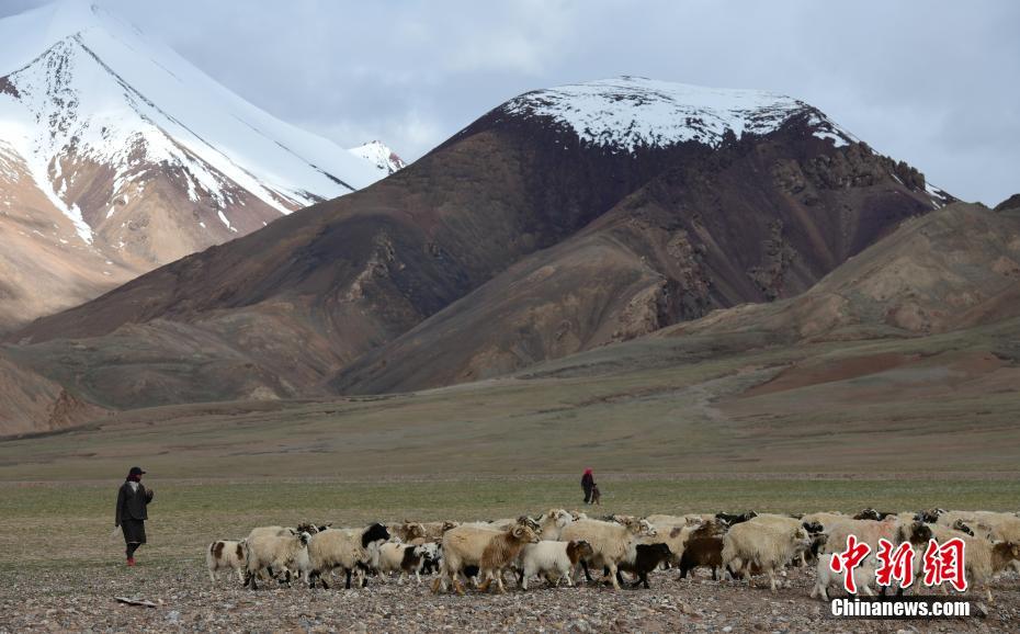 6月19日,牧民在西藏那曲羌塘草原上放牧。羌塘草原位于西藏自治区北部,平均海拔超过4600米,是目前中国海拔最高、面积最大的自然保护区。这里是野生动物的乐园,藏羚羊、藏原羚、藏野驴等珍稀野生动物与雪山、草地、蓝天、白云,构成撼人心魄的壮美画面。 中新社记者 贡嘎来松 摄