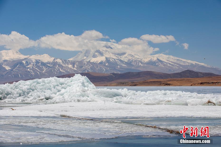 4月21日,入春后,西藏玛旁雍错进入冰融期。玛旁雍错位于藏西阿里地区普兰县境内,是世界上海拔最高的淡水湖之一,面积412平方公里,与纳木错、羊卓雍错并称为西藏三大“圣湖”。图为玛旁雍错冰雪消融。