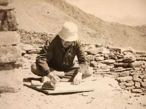 图为1984年,张建林在乃东县(今西藏自治区山南市乃东区)普查绘图 图片来源:中国考古网