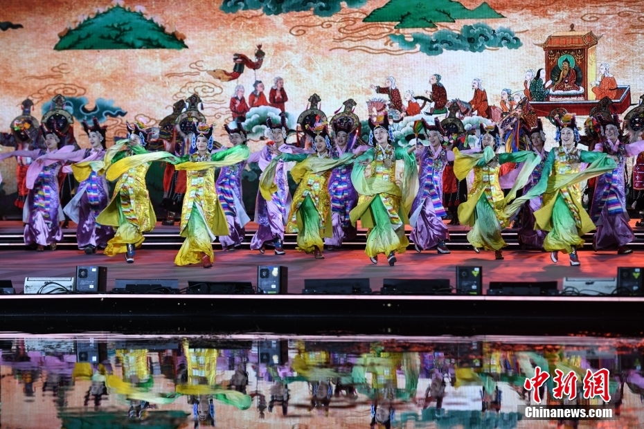 8月16日晚,2023年拉萨雪顿节开幕式在西藏拉萨南山公园举行。据悉,今年的雪顿节以“魅力雪顿·幸福拉萨”为主题。图为开幕式现场。