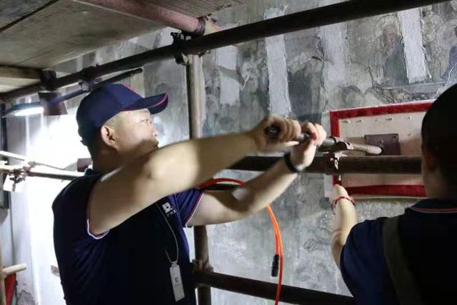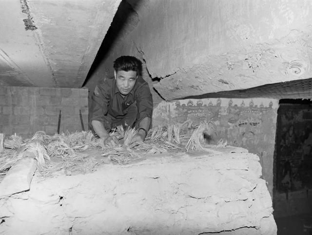 1975年,莫高窟220窟甬道修复。(敦煌研究院提供)