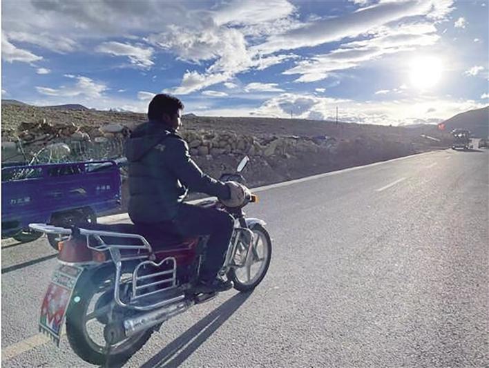 尼玛格桑骑车前往珠峰边境派出所。
