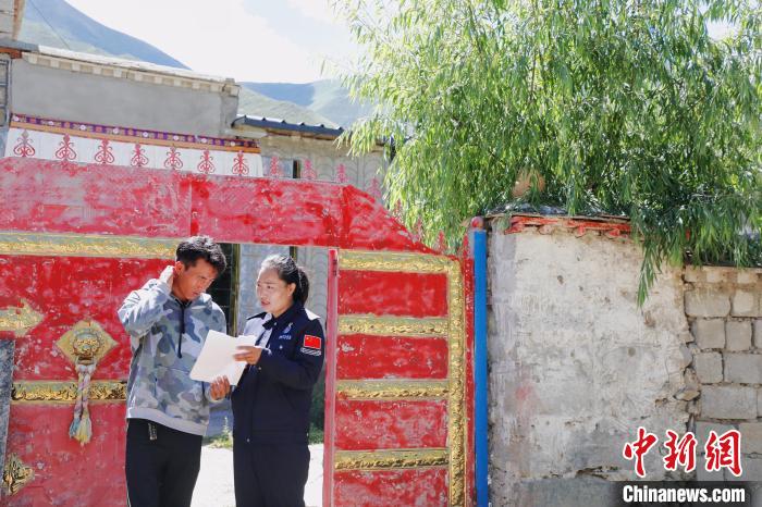 图为索朗曲珍为邻居解答户籍办理的相关政策。 应俊 摄
