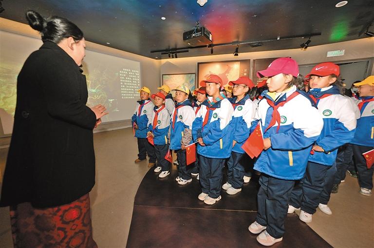 图为拉萨市堆龙德庆区乃琼中心小学的学生参观百万农奴解放纪念馆。记者 潘多 摄