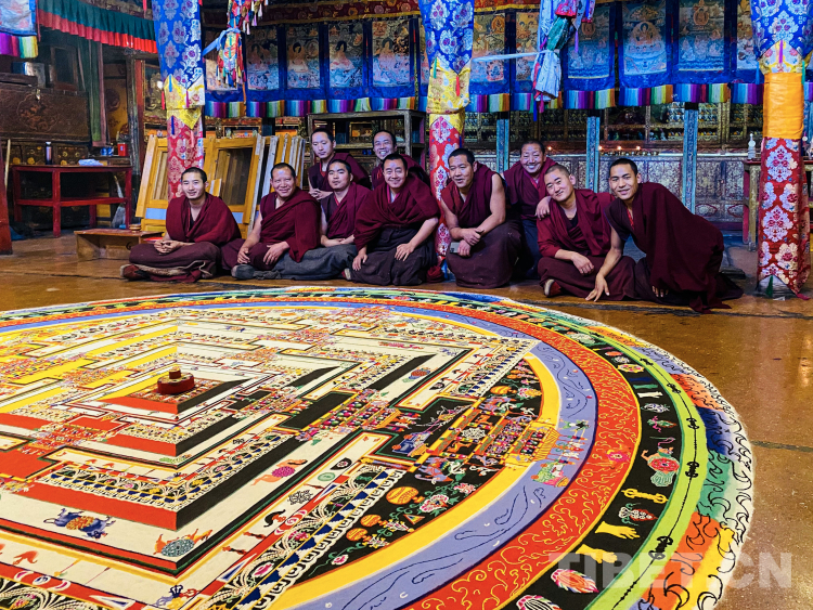 中国西藏网讯 每当人们来到西藏的寺庙,都会赞叹于寺中精美的壁画、造型多样的佛像、别具匠心的唐卡等宗教艺术。这些距今数千年的绚烂艺术中,凝结着藏民族对宇宙世界的思考,是各民族交往交流交融的见证。在藏传佛教中,有一种被称作“最独特、最精致”的宗教艺术---彩砂坛城。今天,就让我们走进扎什伦布寺,一起感受彩砂坛城绘制的精彩绝伦。