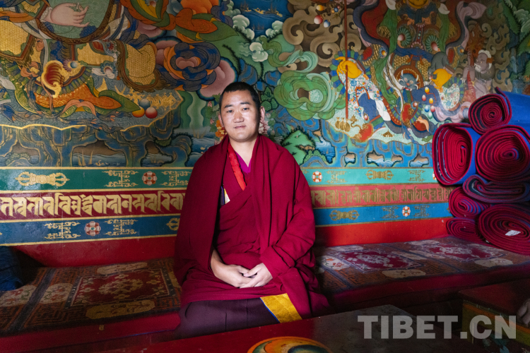 图为慈诚向记者介绍扎什伦布寺彩砂坛城绘制 摄影:赵振宇