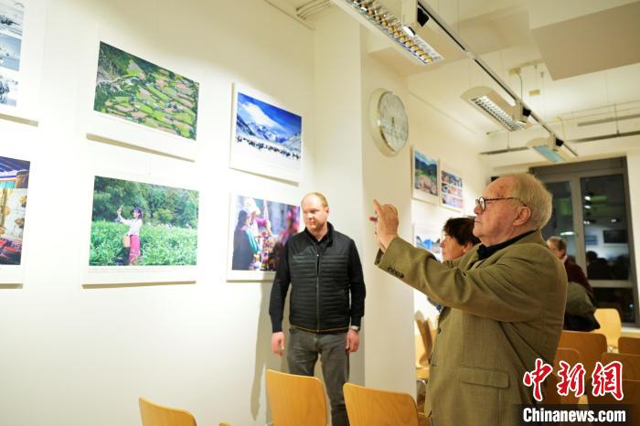 维也纳商会市场部主席马库斯·汉茨(Markus Hanzl)参观“和美西藏”摄影展。欧洲时报记者 周修怡 摄