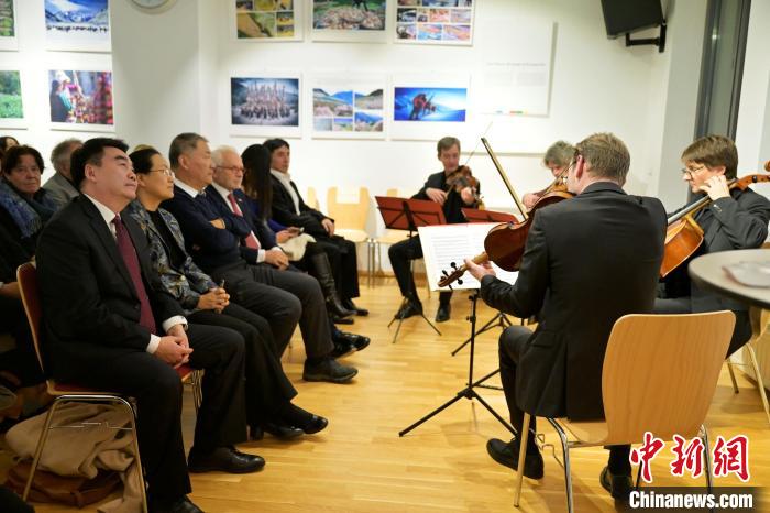 奥地利莱兴菲尔德四重奏乐队( Lerchenfeld-Quartett)在“和美西藏”摄影展开幕式上演奏小约翰·施特劳斯的《皇帝华尔兹》。欧洲时报记者 周修怡 摄