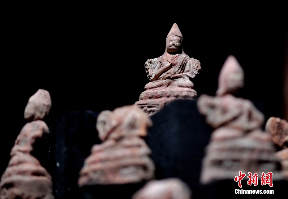 4月13日下午,“聚沙为塔——吉崩岗拉康文物回归特别展览”在拉萨吉本岗艺术中心开幕,以近期回归古建的3000余件文物为主要内容,梳理了古建历史与文物源流。图为展览中的擦擦(脱模泥塑造像)。