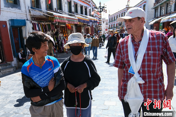 “你们是从哪里过来朝佛的?”“我们是日喀则的,今天是‘萨嘎达瓦’,一家六口人都来了。”5月20日,2023·中国西藏发展论坛中外嘉宾在拉萨八廓街参观时,英国籍访客柯马凯(Michael Crook)在转经道与遇到的藏传佛教信众交谈。