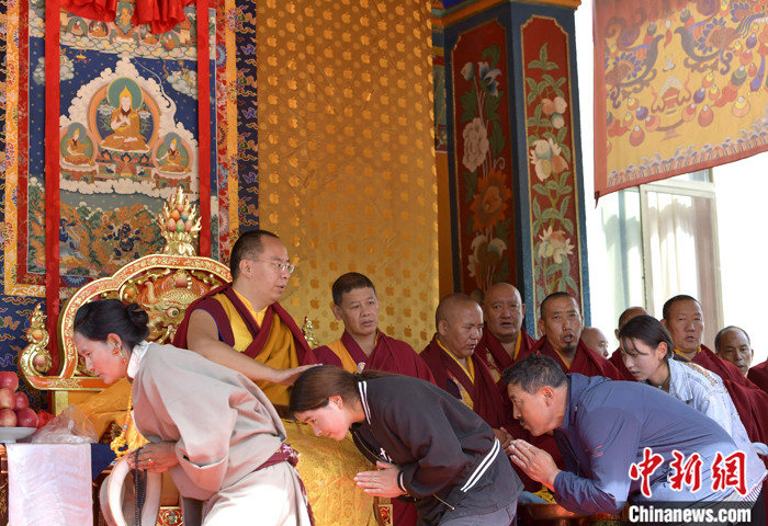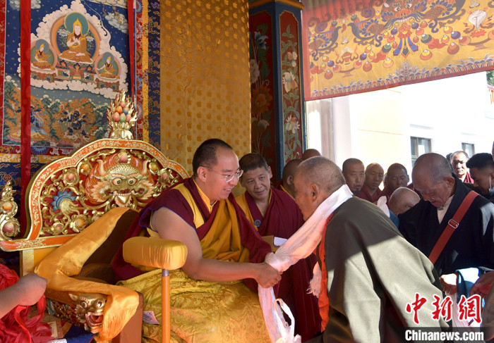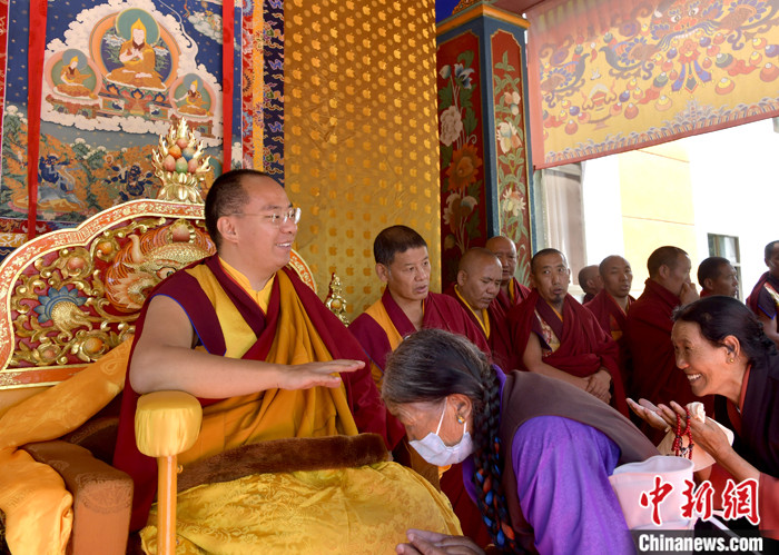 7月17日,班禅在雪林多吉颇章接受信众朝拜。 中新社记者 李林 摄