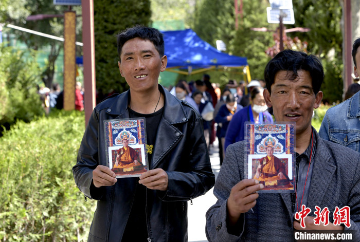 7月17日,信众展示班禅法相照片。 中新社记者 李林 摄