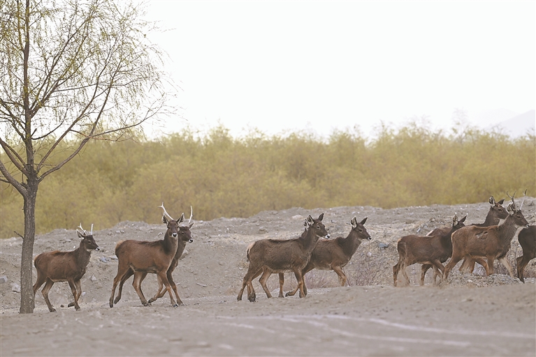 3月21日,在山南市乃东区雅鲁藏布江畔,数只国家一级保护动物白唇鹿现身江畔草地与林间。白唇鹿是我国特有的珍稀濒危鹿种,因唇部洁白得名,主要栖息于青藏高原等高海拔区域。