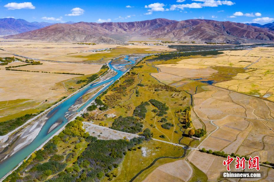 日喀则江孜县境内农田、村居与金黄的树林相映成趣。 何蓬磊 摄