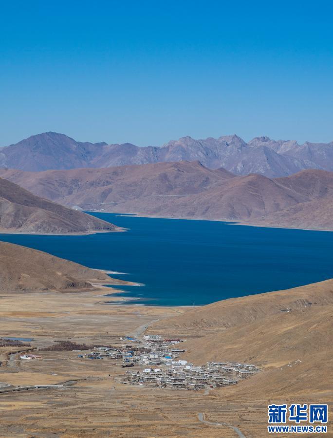 这是1月10日拍摄的羊卓雍错湖边的村庄。新华社记者 孙非 摄