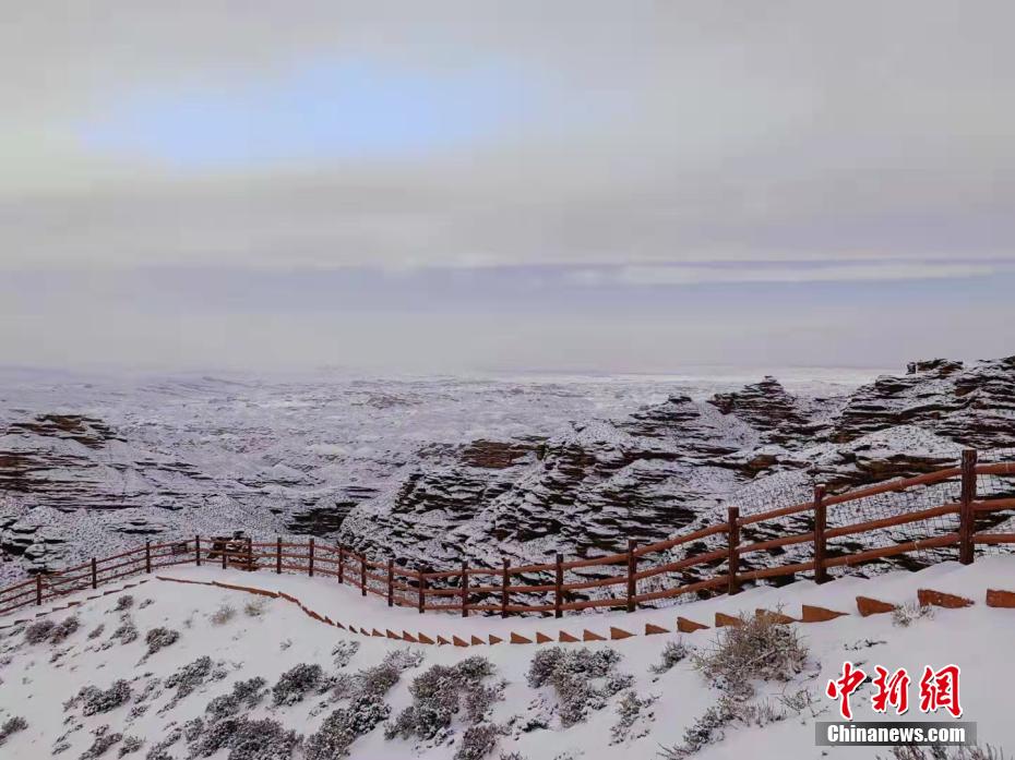 11月21日,甘肃省张掖市平山湖大峡谷内,一场冬雪过后,白雪覆盖在红色的沙石山上,远远望去像落了一场红色的雪,美不胜收。平山湖大峡谷地质构造属于红层地貌,一般称为“红色砂砾岩”,距今已有一亿八百万年至两亿四千万年。 周小珍 摄