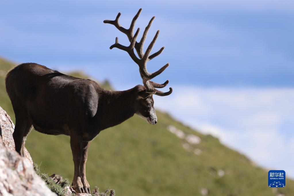 这是在青海省玉树藏族自治州杂多县境内的昂赛大峡谷拍摄的白唇鹿(8月5日摄)。新华社发(达杰朋措 摄)