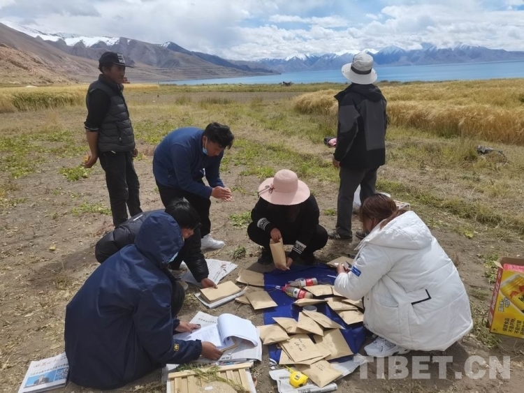 图为西藏自治区农牧科学院草业科学研究所科技人员在那曲市尼玛县文布南村开展农作物第三次普查工作