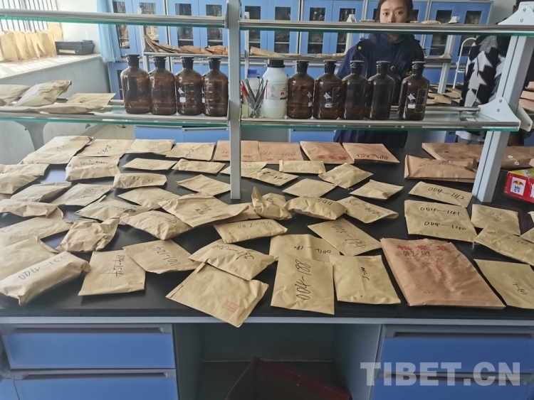 图为西藏自治区农牧科学院草业科学研究所科技人员将采集到的牧草种质资源在实验室内预处理
