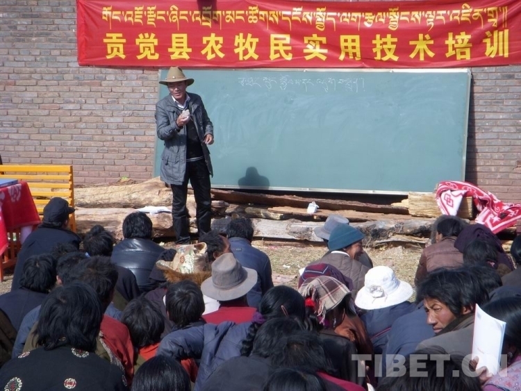 图为西藏自治区农牧科学院草业科学研究所科技人员在昌都市贡觉县开展农牧民草地保护技术培训