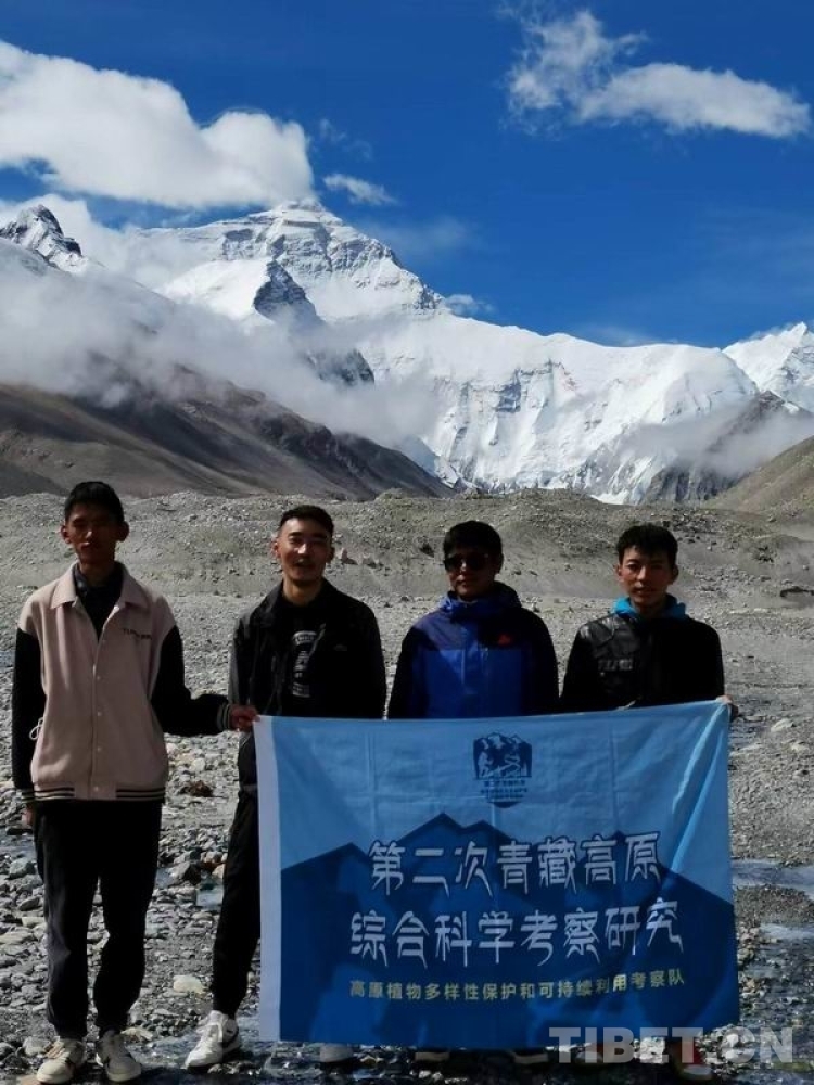 图为西藏自治区农牧科学院草业科学研究所科技人员在珠峰极高海拔区域开展第二次青藏科考任务