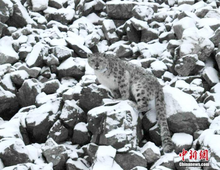 资料图为被追踪雪豹在原地被放归。 中新社发 祁连山国家公园青海省管理局 供图