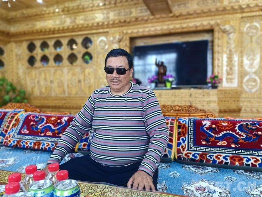 图为正在接受采访的吉塘镇村民阿泽 摄影:王淑