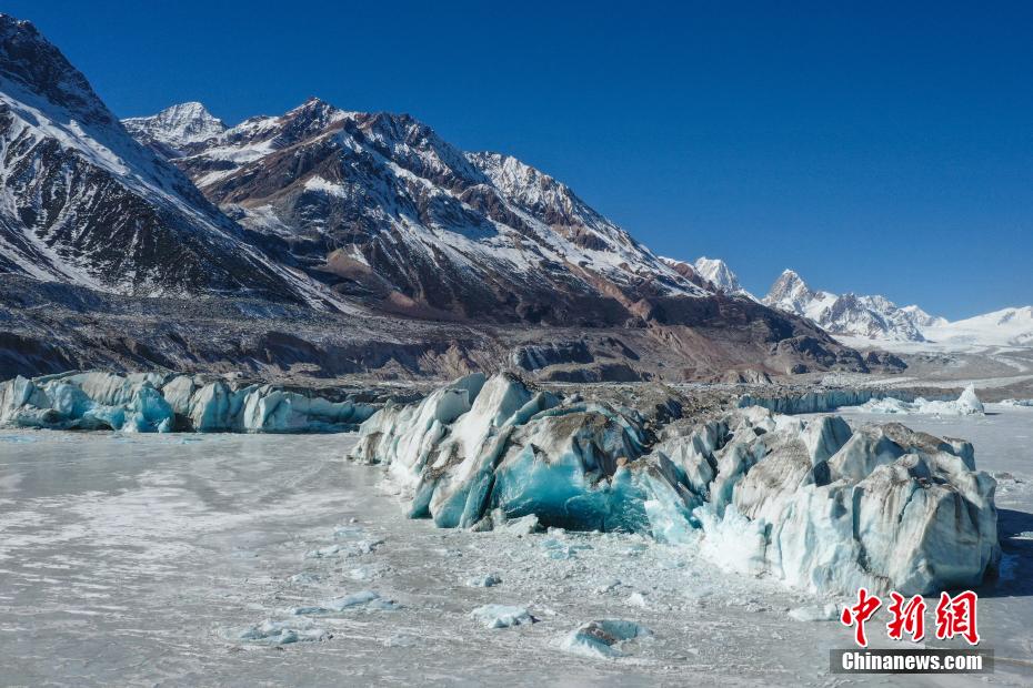 12月19日,西藏自治区昌都市八宿县然乌镇西南部来古村来古冰川风光状美。来古冰川是多个冰川的统称,其外观形态独特壮美,属于海洋性冰川。(无人机照片)