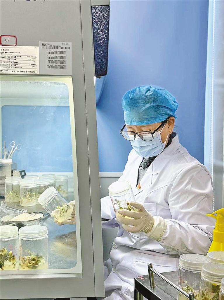 许多植物都有药用价值,为了减少对野生植物的依赖,避免野外过度采集破坏生态,2014年,尼珍团队成功繁育毛莲蒿,并且将组培技术转让给相关企业,还为企业培训了转接人员,不仅保护了植物资源,也提高了企业增产能力。