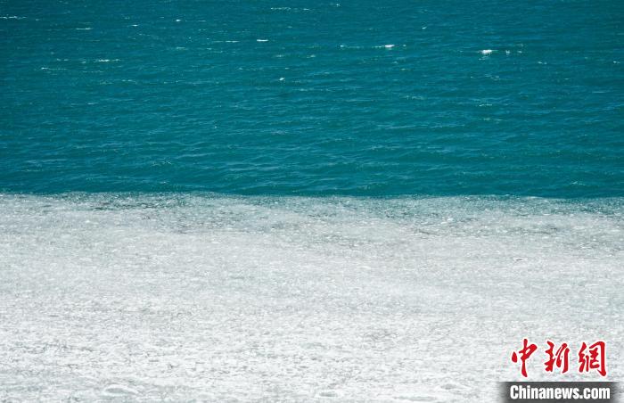 3月27日,航拍西藏自治区那曲市安多县错那湖,湖水交汇处好似“鸳鸯火锅”。错那湖是怒江的源头湖,海拔4600米左右,是世界上海拔最高的淡水湖,也是青藏铁路沿线著名景点之一。(无人机照片)中新社记者 马铭言 摄