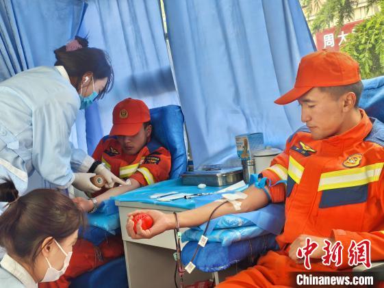 图为日喀则市森林消防大队指战员献血现场。洛桑顿珠 摄