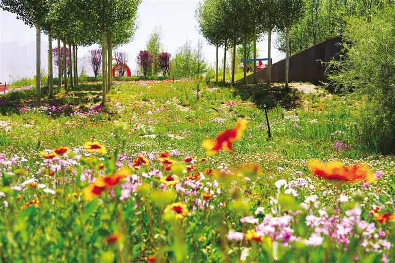 六月的拉萨,阳光正好。澄澈蓝天如洗,高远而明亮。柳梧大桥下的滨河公园,河畔草地铺满各色小花,红的明艳、粉的柔和、紫的淡雅,肆意绽放在绿意间,仿佛步入印象派大师莫奈的画布之中。成片盛开的各类花卉争奇斗艳,五彩斑斓的花朵沿着河畔铺展开来,形成一片片绚丽的花海。不同颜色的花朵相互交织,随风摇曳,与蓝天白云、碧绿的河水、远处绿意盎然的南山相映成趣,构成了一幅花海画卷。