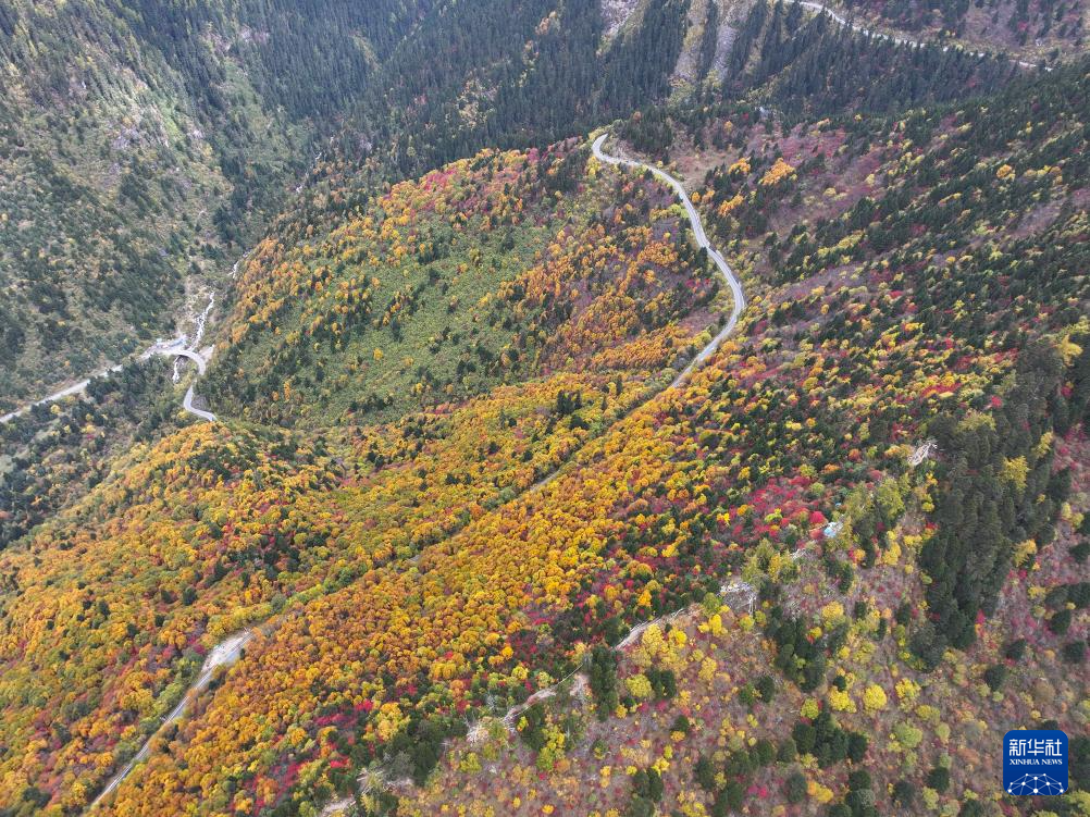 这是10月28日在林芝市巴宜区拍摄的色季拉山秋景(无人机照片)。华社记者 卢丹阳 摄
