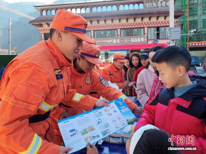 图为消防员开展防火宣传。西绕拉翁 摄