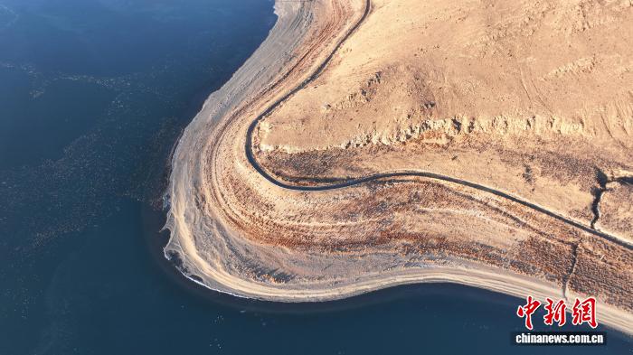 1月18日,西藏羊卓雍错流域沉错风光。沉错地处西藏羊卓雍错东部,是羊卓雍错水系重要组成部分,湖形狭长、湖水深邃,因湖底地形复杂得名。作为羊卓雍错流域内关键生态区域,沉错已成为众多候鸟越冬的乐园。(无人机照片)中新社记者 贡嘎来松 摄