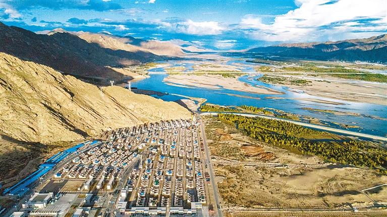 位于贡嘎县的森布日搬迁安置点(2020年9月24日摄,无人机照片)。新华社记者 孙非 摄