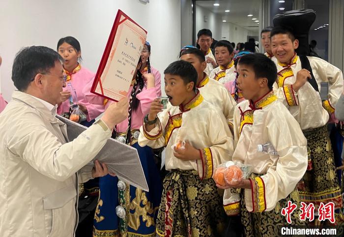 图为果洛州青少年管乐团的成员们领取获奖证书。 汤声声 摄