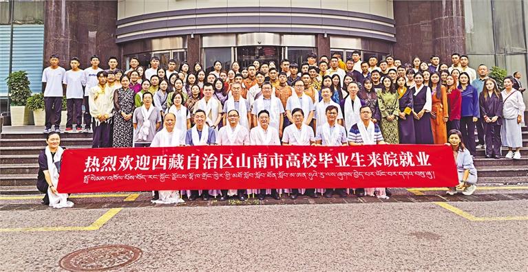 2023年9月,106名西藏籍高校毕业生组团赴安徽省就业,在全区实现首个百人以上规模的“大组团”区外市场化就业目标。图为西藏籍高校毕业生抵达安徽后合影留念。
