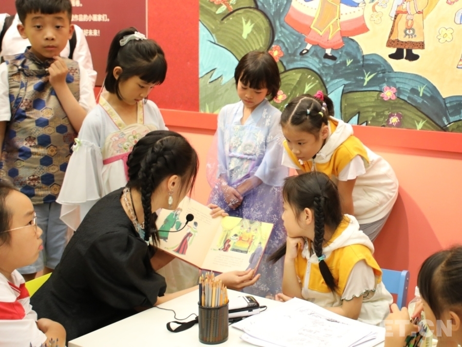 图为开幕式后,导读老师为孩子们讲中华历史故事 摄影:王茜